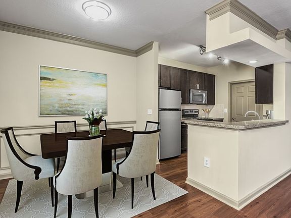 - Exterior features: 24-hour emergency maintenance, Barbecue, Built-in bookshelves, Business Center, Cable included in rent, Ceramic tile backsplash, Chair railings, Chocolate birch cabinetry, Clubroom, Courtyard, Crown molding, Double-sink vanities, Flex Space, Flooring: Wood, Garages available, Garden, Granite-style countertops, High-endurance fitness zone, Housekeeping, Internet included in rent, Meeting rooms, Non-smoking amenity areas, Online Rent Payment, Parking, Pet Park, Stainless steel appliances including microhood, Wi-Fi in common areas