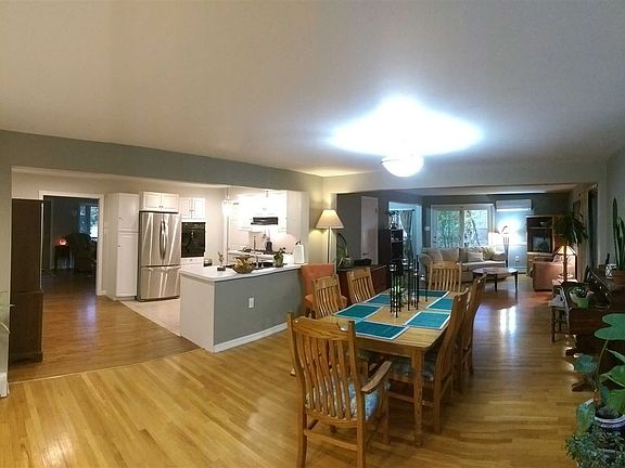 Seasonal flowering trees, bushes and bulbs give color throughout the seasons on this large tree shaded yard. Cedar siding and newer architectural roof. Hardwood floors throughout. Upper level has 3 bedrooms, 2 full baths, including Jacuzzi tub in the master bath. Main level has large entry closet, front sitting room, open concept kitchen, living, and dining area surrounded with windows for a well lit, open feeling. Finished lower level offers a full size laundry room, 4th bedroom or office, and a large living space great as a TV/living room with ample room to work out. Dirt cellar with plenty of work space. Nice-sized one car garage with cement pad in front.