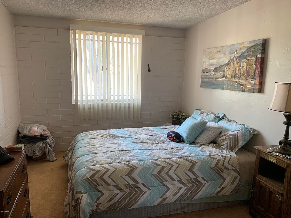 EXCELLENT OPPORTUNITY FOR INVESTOR OR OWNER OCCUPANT. Convenient eastside location close to DMAFB, Pima College East Campus, Amazon Center. Enjoy your morning coffee and the evening shade in your east-facing screened-in porch. Quiet community backs to wash for added privacy. Large rooms. Spacious laundry room off sunroom with lots of storage. Newer washer, dryer, refrigerator, water heater and evaporative cooler. Front faces large open, attractive, and well-maintained common area. Fenced back yard. Private parking with covered carport. Price reflects needed flooring. Sold in as-is condition. Clean and ready for your personal touches!