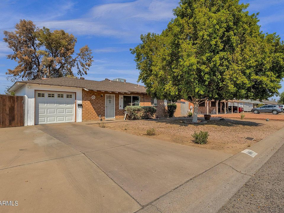 WOW, LOOK AT THAT PRICE! Welcome to this charming 3-bedroom, 2-bathroom ranch-style home in Phoenix! With 1,302 sq. ft. of living space, this home offers a comfortable and functional layout perfect for everyday living. As you approach, you'll be greeted by the low-maintenance gravel/stone front yard, which complements the classic ranch-style architecture. Step inside to find tile and wood flooring throughout the home. The bright and airy living room flows into the eat-in kitchen, where you'll find lots of cabinets and counterspace making meal prep a breeze. The master bedroom offers its own closet and private bathroom, ensuring a peaceful retreat. The additional bedrooms are well-sized and share a second bathroom, providing ample space for family or guests. Step outside to the covered patio, perfect for enjoying your morning coffee or evening relaxation while enjoying your HUGE backyard. With 1 garage space equipped with an electric door opener and 2 additional slab parking spaces, you'll have plenty of room for vehicles and storage. Recent Seller updates include: