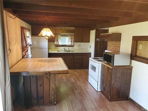 On a snowmobile and ATV trail, this home is also within a half mile of Snow Ridge Ski Center and 3 miles from Turin Highlands Golf Course and South Lewis Central School. Location, Location, Location!! This is a perfect get away second home, with garage to store your toys and a workshop below for normal repairs. Nice back yard with a view of the distant Adirondacks. The stove and refrigerator remains along with a modern pellet stove. Minor sprucing up needed but otherwise in good shape. Don't let this one get away.