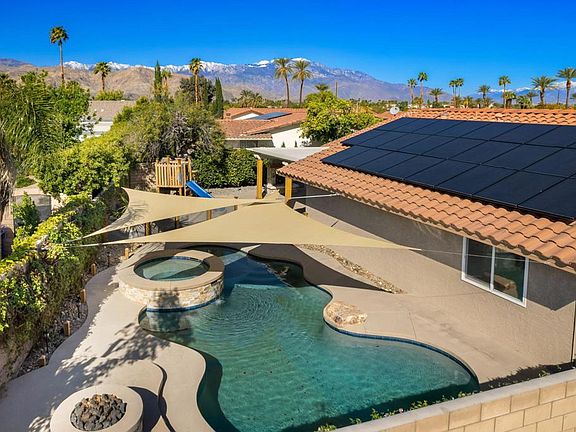 Spacious 4 bedroom, pool home, completely updated in the heart of Palm Desert! Located on a quiet cul-de-sac in Sagewood, a great family neighborhood positioned close to great schools, exceptional shopping, dining, the new Acrisure Arena and Disney's Cotino development. This home was recently remodeled from top to bottom, including opening walls for an even better floor plan and a brand new pool, spa, & outdoor entertaining space! *BONUS* The Solar System is fully paid off with Tesla battery back-up on a newer roof. All new... cabinets & counters throughout, floors, paint, ceiling fans, kitchen appliances, duct work, HVAC units, thermostat, windows with custom treatments, front door, side gates, fireplace, tankless water heater, outdoor kitchen, firepit, garage door opener, landscaping and more!Enjoy the open layout with 2 separate living areas, an eat-in kitchen, and the outdoor kitchen, covered space and fireplace. The bedrooms are fresh and spacious, ready for your personal touch. Loads of storage throughout the entire home and garage. Solar tubes are also found throughout the home, giving great natural light that saves you money! The backyard is private with a large covered patio and mature landscaping. Sagewood offers immaculate tennis courts, community area with pool and spa all for a very low HOA fee. Don't miss your chance to own a charming home in a great neighborhood!