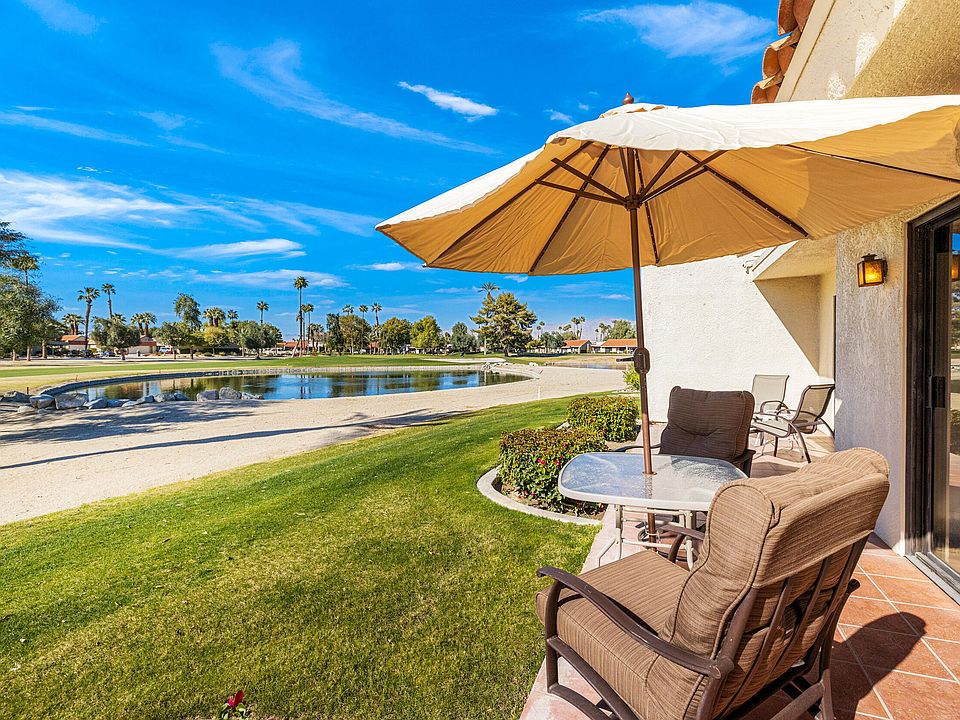Introducing this spectacular Vintage model within the gates of Palm Desert Resort Country club with one of the very best locations in the entire community. This 2 bedroom, 2 bath home encompasses an intelligent floor plan with owner's suite and bath is on one side of the home and guest bedroom and bath on the opposite, which is perfect for privacy and separation. Both large bedrooms feature a walk-in closet and direct access to the patio. Peace and tranquility emanating from the back patio with dramatic mountain, lake, and golf course views. The two-car garage is great for, accessibility, storage, and protecting your car from the elements. Offered turnkey furnished per inventory list. Gated community with guard 24/7. The Palm Desert Resort Country Club is a very active community with Clubhouse 20 Pools & Spas, Tennis & Pickle Ball Courts, and a regulation 18 hole golf course. Triple threat home makes it perfect for primary residence, rental or second home. Your desert oasis awaits!