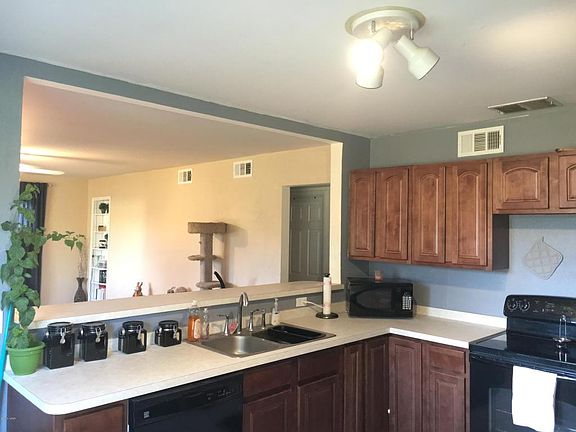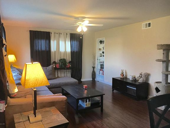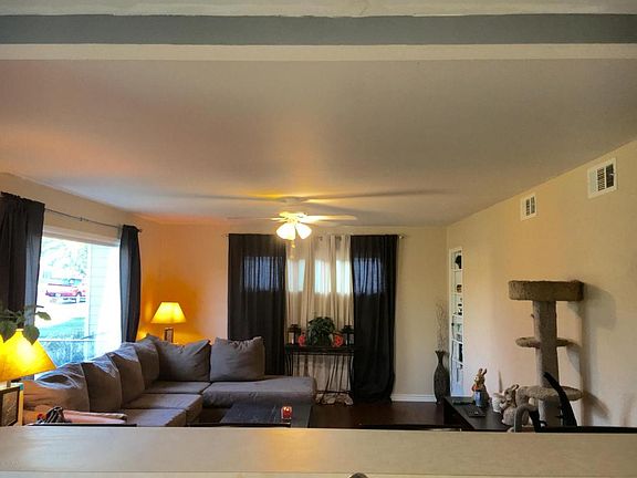 Cute open concept single level home featuring 3 bedroom and 1 bath. Updated large kitchen with breakfast bar looking out into the living area that has newly installed flooring. Lots of yard space in the back along with a double car detached garage with additional parking for 2 vehicles. And air conditioning!