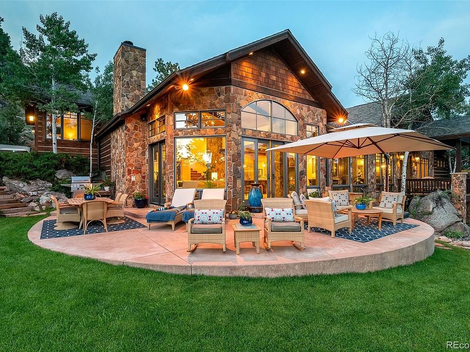 Evergreen Elegance...that's the first thought that comes to mind as you approach this spectacular home. Properties with this level of custom craftsmanship, central Evergreen location, paved road access, and Xfinity internet are a needle in a haystack. Perched at the top of Hiwan Hills with southwest Mt. Evans VIEWS, this stunning property offers serenity and seclusion on almost 4 acres with a mountain feel, but a perfectly manicured lawn! Take in nature and amazing sunsets while relaxing on the expansive patio. Upon entering the home, you are greeted with expansive spaces and gorgeous millwork. The great room is an entertainers' dream with an inviting fireplace and expansive picture windows to frame that photogenic VIEW! The gourmet chef's kitchen with it's huge island, copper sinks, top of the line range and stone backsplash has a layout that just makes sense. Lovely Butler's pantry and work station allows for all personal effects to be tucked away from guests' view. The primary suite makes waking up each day seem like a dream! Views, salt water hot tub, sauna, and exercise room (or potential 2nd home office or craft room)...it's like having a personal spa inside your home! The main floor also has 3 generously sized secondary en-suite bedrooms and convenient huge laundry room. Also located on the main level is a wonderful home office that has private entrance access for any clients that may come to your home. Lower level is perfect for movie nights and entertaining equipped with a wet bar, projector and 3/4 bath. Mudroom and ample storage just off the oversized 3 car garage makes bringing in your outdoor gear a breeze. Don't miss the additional 2 car detached garage for any additional cars or toys you may have. If you can believe that the views can get even better at this retreat, take a walk up to the gazebo and check out the views from there! The convenient location of this home can not be beat...moments to Evergreen Lake, schools, and all area amenities!