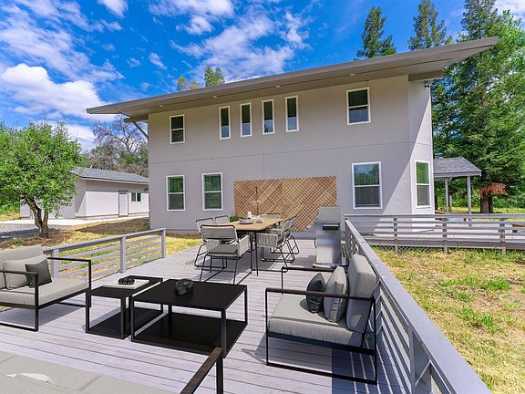 Private, spacious, updated and bright with natural light! This charming home features 3 bedrooms, 3 full bathrooms and sits on a usable 7.2 acre lot. Brand new detached 2 car garage! Large windows provide amazing views around your property. Master suite includes a huge walk-in closet. Beautiful fixtures and updates throughout home. Open floor plan yet plenty of character! New HVAC, stucco, dual pane windows, wrap-around deck, recessed lighting, Cambria quartz countertops, flooring, and much more! Also includes 2 riding arenas, storage barn, and one four-stall barn. Approximately 15 minutes from I-80 and shopping. Welcome home.