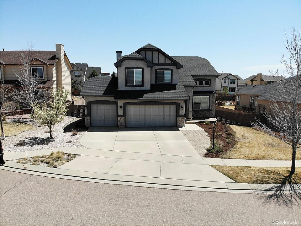 This is it! Welcome home to this charming 2-story on a cul-de-sac, in the heart of Academy District 20! Located in the desirable Pine Creek neighborhood, this golf-course community is within minutes of John Venezia Park, shops, restaurants, and has close proximity of I-25 and Powers. This dearly loved home is comfortable, updated, has a finished basement and 3-car garage with plenty of space for your Colorado toys. The stunning entryway boasts vaulted ceilings and classic hardwood floors that continue throughout the main level. The gorgeous plantation shutters never go out-of-style. The fully-equipped kitchen and inviting family room include lots of south-facing windows that make the home light, bright, and cheerful, not to mention they showcase striking views of Pikes Peak! The main level also offers a convenient laundry room and half bathroom, which has wheelchair accessibility. The upstairs welcomes you with 3 bedrooms, 2 fully remodeled bathrooms, and a warm loft space, perfect for the office, playroom, reading area, or whatever you wish it to be! The spacious upstairs master is absolutely a retreat for relaxation and rejuvenation and leads into a remodeled bath, with modernized finishes, a soaking tub with carrara marble tile, and beautiful dual vanity. The master suite also includes two generously-sized closets and even more impressive mountain views. Heading downstairs, you will find a fully finished basement with designer-selected finishes and a custom kitchenette. The large living space has a rustic Colorado design, and there is plenty of room for game tables, lounge seating, or extra space for guests. The basement also includes a 3/4 bathroom with a walk-in shower and granite countertops. **Brand new carpet was just installed in the upper level, and lower level stairs!** Furnace & A/C unit installed in 2021!** Includes a whole-house humidifier and air purification system. Come see this jewel in Pine Creek, as it won't stick around for long!