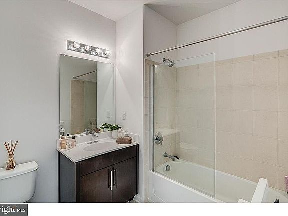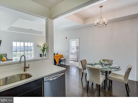 Lovely Darby model with beautiful dark hardwood floors and carpet in bed rooms. Rare largest model End unit plus 4th floor(no one above you) with 3rd bedroom or use as a Den! Large kitchen with quartz countertops, dark cabinetry, and stainless steel appliances. Throughout the living areas are lovely tray ceilings and you can Enjoy the views from your balcony that stretches from the living room to the master bedroom. That master suite features a large master bath with a garden tub, stall shower, dual vanity sinks and great lighting from a large lovely window. A large 2nd bedroom is just across the way plus another full bathroom, large laundry room and lots of closet space. Spend your days and evenings overlooking the Philadelphia skyline on your private deck on the top penthouse floor. In addition, there is a one car garage on the ground level and a deeded parking space too. For fun, there's a community center, clubhouse, fitness center, fire pit, patio with grills, conference rooms, swimming pool, tennis courts and playground. Renter has to pay for Sewer and Utilities(Water, Gas, Electric and Renter's insurance). Small pet is allowed but $50 pet fee will be charged.