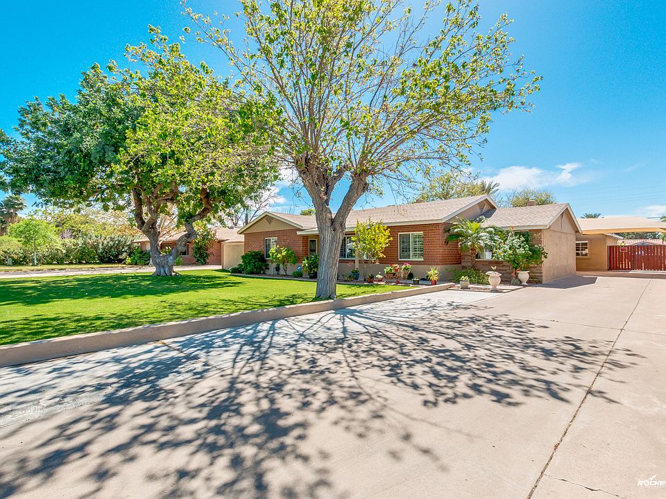 Look no farther for your family's sanctuary in the city! Tucked away in a beautiful neighborhood in lower Arcadia, this 1/4 acre, irrigated lot is teeming with plant life. Relax in the shade of 6 mature trees and enjoy the outdoors year round. Maximize your time with quick access to freeways, Sky Harbor Airport, Scottsdale Fashion Square, great local restaurants, (LGO,Helios Brewery,Postinos,Pita Jungle),popular hiking trails and many other hot spots. This Rancho Ventura home has maximum curb appeal with gorgeous landscaping, lush grass, long driveway and shade trees. The split floor plan, ranch style home with master suite & walk in closet is hard to find. The spacious family room with fireplace and large covered patio in the backyard are perfect for quiet nights with family or for entertaining. With this home you can have it all!