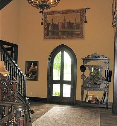 European Estate located on 7.5 acre m/l picturesque setting in an exclusive gated community. This six bedroom six full bathrooms and two half bath home features incredible craftsmanship, hardwood floors, crown moldings, granite and limestone. Finished walkout basement with separate media room, recreation room and exercise room. Separate study with fireplace, huge master suite with fireplace opens to outside living areas, 4 car garage. Owner will consider possible trade.