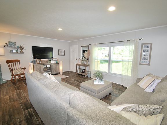 This stunning house was built in 2022 that the seller uses as a 2 bedroom home with an additional room that can be used as a play room or office. The open floor plan features a large living room area with a beautiful eat-in kitchen with stainless steel appliances. The large master bedroom suite has double vanities in the bathroom and a large modern walk-in shower with built-in linen cabinets. The large additional room with a closet is currently being used as a second bedroom by the seller. The second additional room offers space for a flex room like an office, play room, home gym, etc. As you enter the house from the back deck you walk into the elegant and spacious laundry room that offers lots of storage in the built in cabinets along with a sink. 1+ acres of country living with style