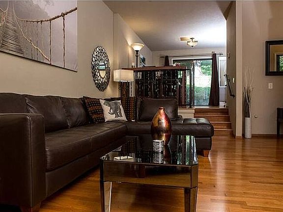 2 story condominium with hardwood on the main floor. Large open living room with glass slider that leads to front balcony. Half bath on the main floor that is great for entertaining guests. Open kitchen with vaulted ceilings and skylight that provides lots of natural light. Two large, spacious bedrooms as well as two full baths located upstairs. Extra deep 1 car garage. Additional storage space off the back patio that backs-up to a small green space facing Kerr Pkwy.