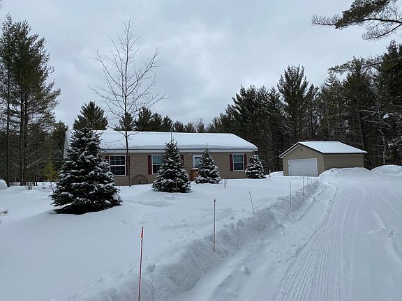 SNOWMOBILERS AND OUTDOOR ENTHUSIASTS This new 3 bedroom, 2 bath home situated beautifully on 10 wooded acres has it all. Tastefully painted home boasts of an open floor plan with lots of natural light. Wonderful kitchen where friends gather includes stainless appliances, bar seating and wood/vinyl flooring. Spacious main floor laundry with laundry tub and cabinetry for storage. Master bedroom suite with walk-in closet and 3/4 bath. Dining area has a doorwall to the 15' x 15' cement patio. Grow your own vegetables in the partially fenced in back yard or enjoy a leisurely walk on the trails. 25' x 25' detached garage with metal roof, opener and built-in shelving. New Generac Generator and hunting blind.are included in the sale. Close to miles of snowmobile trails, lake access and golf.