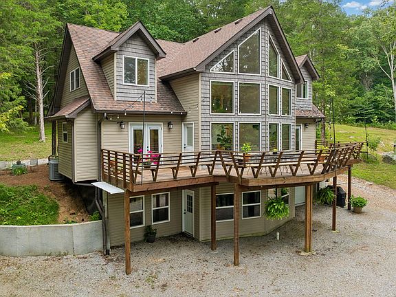 Exceptional custom home w/finished basement on 20 acres! This beautifully designed, well-built home features 2x6 exterior walls, a solid concrete foundation, & energy-efficient blown-in insulation. The kitchen boasts gleaming countertops, farmhouse sink, & pantry. It’s fully equipped w/ stainless stove, dishwasher, microwave, & includes a full refrigerator with a matching freezer. The great room showcases striking floor-to-ceiling windows, flooding the space with natural light. The main-floor primary bdrm. has a walk-in closet & full bath w/walk-in shower. In addition to 3 bedrooms, you have extra rooms upstairs and in the basement! Outside features, a pool w/large deck and bar area that’s perfect for entertaining, 4 ponds stocked w/Bluegill and Bass, 40x40 insulated workshop w/ 1/2 bath & wood stove, ATV trails, amazing creek, and captivating geological features. Whether you’re seeking a peaceful retreat, an outdoor adventure haven, or a place to create lasting memories, this is the place for you!