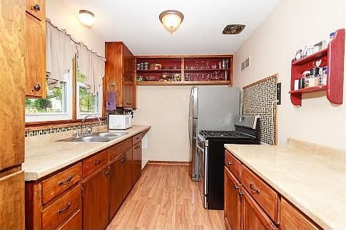 Horses allowed! Here's your opportunity to keep your horses on property with you. This 1960's built home offers 3 bedrooms, 11/2 baths with partially finished lower level which includes a spacious family room. The kitchen has had recent updates to include new counter tops, back splash, window and appliances. Fenced back yard, covered front deck and storage shed. Much of the additional acreage is mowed and includes another outbuilding and walking trails through the property. Fencing in place (may need a few repairs) for your livestock! Convenient to Hwy 24, yet private country living!