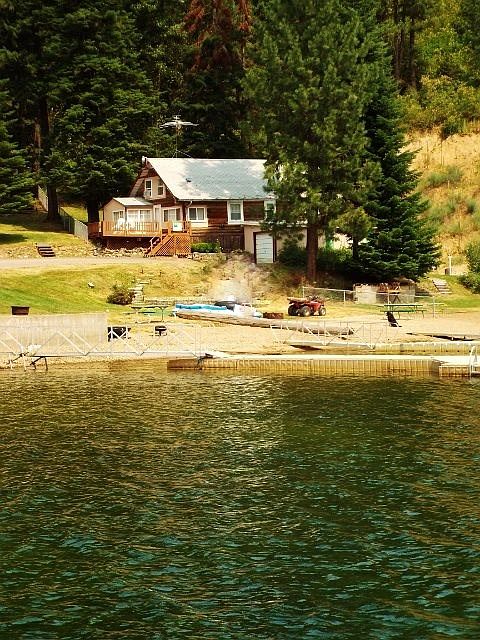 Classic Deer Lake Log Hm on 50' of Waterfront. Low bank property that includes 2 additional view lots behind the cabin, 1 with power (maybe build a shop or In-Law cabin?). Bring your home improvement skills & imagination to make this 3bd, 1ba cabin uniquely yours! Many updates over time that include vinyl windows, propane heat, large deck, storage shed & EZ Dock at the sandy beach shoreline. Over ½ acre on a paved county road. Priced $5k below tax assessed value for a quick CASH sale! =SELLER TERMS OFFERED=
