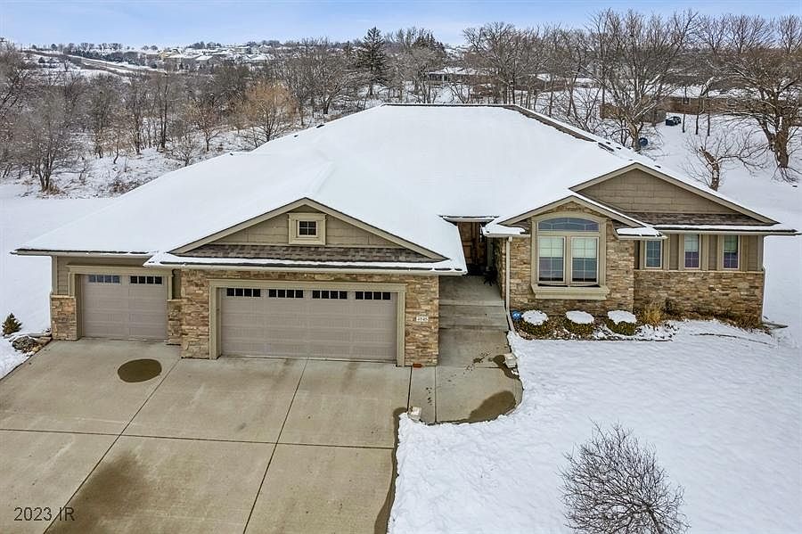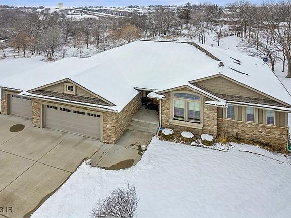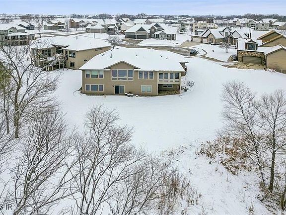 Walkout ranch on a 1.48-acre private cul-de-sac lot backing to the Clive Greenbelt Park and Trail in Shadow Creek Neighborhood in low tax Clive, Iowa. The home has an open floor plan, 4,000 finished SF, 4 BRs, 4 baths, 2 fireplaces, 3-car garage. The first floor has solid hardwood floors, 3 season porch, a dream kitchen w/large center island, walk-in pantry, mud room & top of the line stainless appliances including Jenn air gas stove & huge double refrigerator; family room with 11' ceiling; master bath with 11' ceilings & walk-in closet that connects to laundry room; master bath with 2 sinks & tile shower. Finished walkout lower level has a family room with a 2nd fireplace, walk-behind wet bar with full sized refrigerator & micro, two bedrooms & possible theater/exercise room. Private backyard w/garden areas. One of a kind custom home.