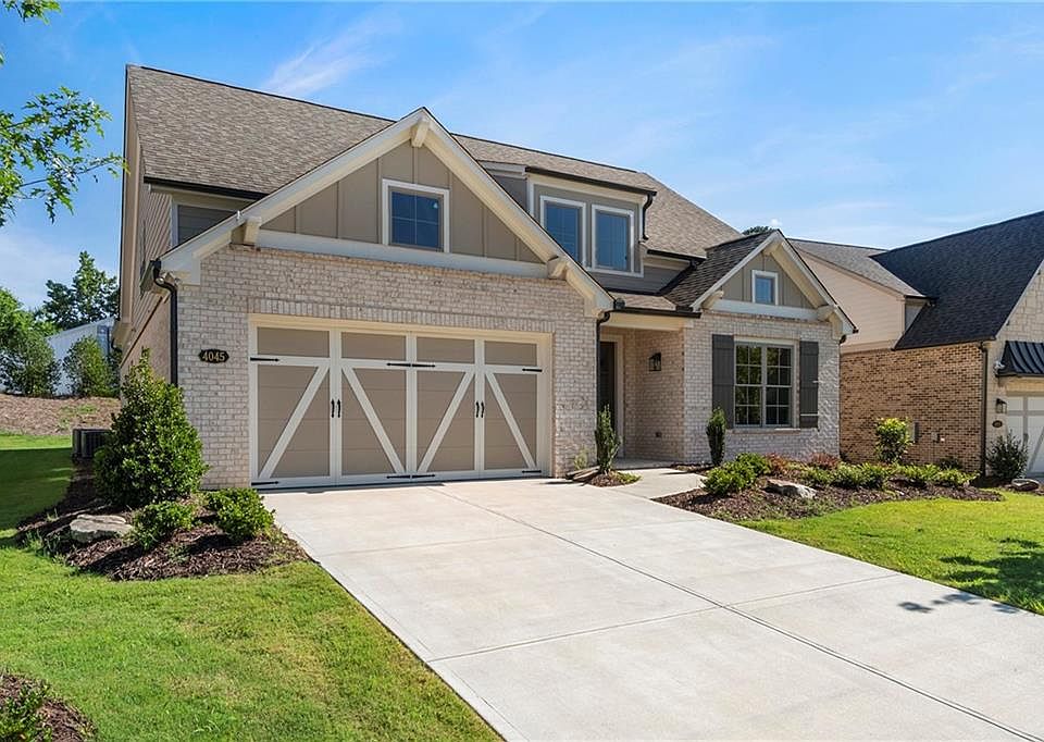 This beautiful Burchfield floorplan has a two story foyer. Two Guest Beds with shared bath off foyer. Large open style kitchen features butler's pantry large island. Dining Room features judges paneling. Great Room showcases coffered 12' ceiling, built-ins, and hardwood floors. Private Owner Suite on Main features trey 12' ceiling. Spacious owner's bath includes upgraded countertops and large walk-in shower with frameless surround and bench seating. Oversized laundry room on main. Second floor includes bedroom, bathroom, loft and walk-in attic. Large rear covered porch overlooks backyard