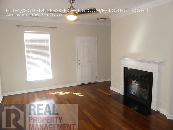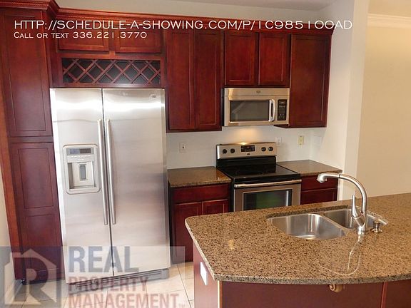 SCHEDULE A SHOWING ONLINE AT: showmojo.com/lh/1c985100ad Conveniently located near easy access to shopping and Wendover Ave, this beautiful 2 bedroom, 2.5 bath home has a wonderful kitchen with an island and stainless range/oven, refrigerator, dishwasher and built-in microwave. Beautiful wood floors compliment the open living area with gas fireplace. The upstairs is fully carpeted with two bedrooms, each with a private full bath. Laundry closet with washer and dryer provided as a convenience. Cozy gas heat and gas hot water heater. Easy access to the private fenced-in patio and storage closet. Community pool. Freshly painted, this property is move-in ready and will go quickly. Call today! 18 Month lease, Security Deposit and Lease Administration Fees Apply You can view this place on your own, at a time that is best for you.com Assigned Outdoor Parking Built In Microwave Carpet Central Air Community Pool Freshly Painted Garden Tub Gas Fireplace Gas Heat Granite Counters Kitchen Kitchen Island Open Living / Dining Space Outside Storage Range/Oven Walk In Closets Walking Trail Washer/Dryer Wood Floors