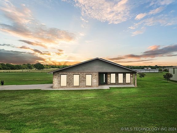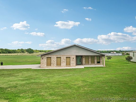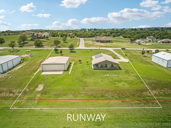 Nestled in the picturesque Skyhaven Airpark subdivision of Collinsville, Oklahoma, this charming 3-bedroom, 2-bath home sits on a sprawling 2.49-acre lot. The updated kitchen boasts stainless steel appliances, marble countertops, and elegant wood/tile flooring throughout. The home is filled with an abundance of windows, bathing the interior in natural light. Step outside to the large covered back porch, perfect for entertaining guests or enjoying quiet evenings, watching the breathtaking sunrises and sunsets. This property also features a 3000 sq ft hanger with a 40’ wide door perfect for an airplanes, boats, or RV’s. It's