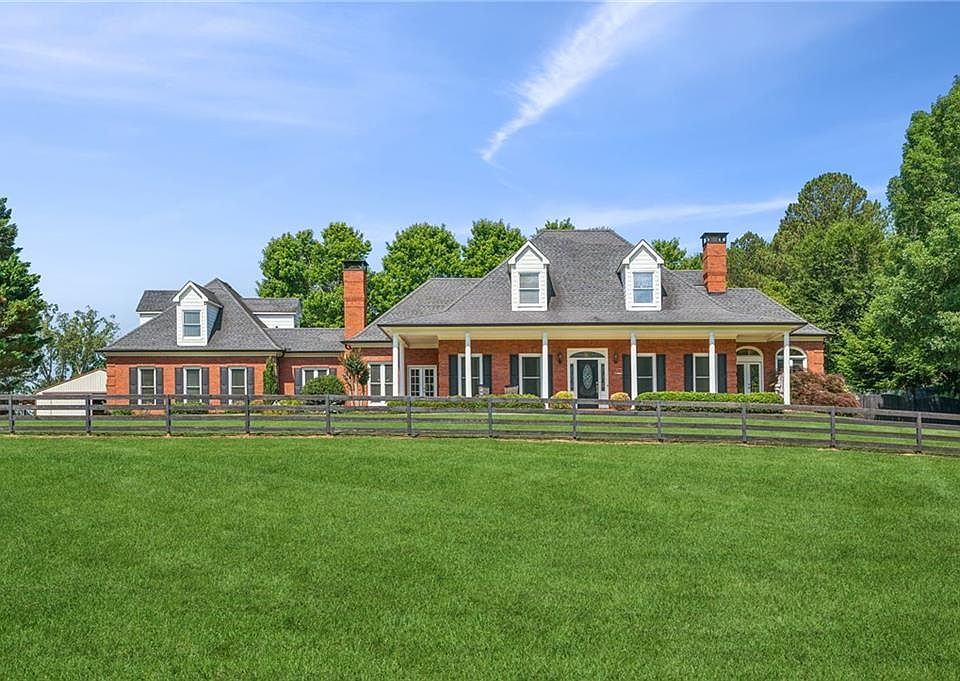 Welcome to your equestrian oasis in the heart of West Forsyth. This stunning 4-bedroom, 4-bathroom traditional home spans over 4,003 square feet and is situated on a sprawling 4.76-acre lot. The property features a master suite on the main level, providing convenience and elegance. This well-built, four-sided brick home boasts high ceilings, hardwood floors, and two charming brick fireplaces, creating a warm and inviting atmosphere. Enjoy additional living spaces such as a keeping room with a large brick fireplace, a bright and sunny sunroom, and a large bonus room that can serve as an office or playroom. The covered back patio and expansive garden offer serene outdoor living spaces for relaxation and entertainment. Equestrian enthusiasts will be delighted by the horse barn with four stalls, a riding arena, and large, beautiful fenced pastures, perfect for horses and other animals. Additional amenities include a spacious workshop and a large garden. Located just minutes from GA 400, this property offers easy access to excellent schools, shopping, dining, and the greenway. Experience the perfect blend of luxury, privacy, and convenience in this exceptional equestrian estate.