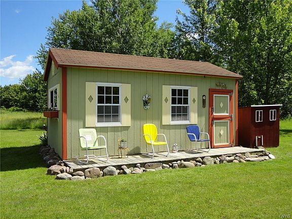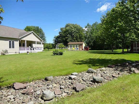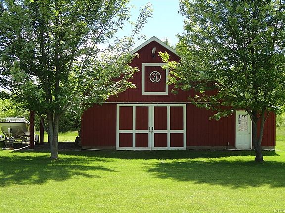 ABSOLUTELY STUNNING RANCH SITS ON ALMOST 5 ACRES WITH 250 FT. OF WATER FRONTAGE AND DEEP WATER DOCK!!! Privacy abounds here on beautiful, manicured grounds that include a "dollhouse like" garden shed and a 30' x 36' carriage style barn with entry and exit overhead doors. Apple trees and grape vines grace the property along with beautiful evergreens, foliage and a man-made rock creek. Beautiful, huge porches grace both front and back of the house with screened in sitting area in front that has access from master, kitchen and living room. Lower deck has niche for grilling. Open floor plan, gleaming hardwoods, quartz countertops in kitchen with walk-in pantry and full windows across the whole front of the house for the views will leave you breathless. Walk-out basement. SEE TODAY!