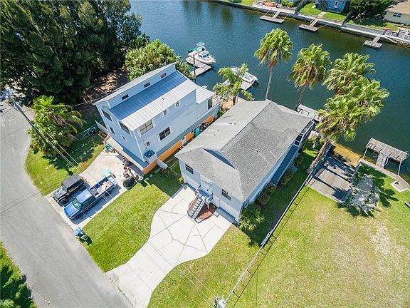 Boaters Dream Home in Hernando Beach, FL! Located on wide saltwater canal with direct access to Gulf of Mexico, seawall and floating dock in place! Home features an open floorplan, light and bright inside with beautiful water views! Two bedrooms - split plan, main bedroom has large walk-in closet. Kitchen overlooks living and dining areas. There is a breakfast bar and a huge walk-in pantry to store appliances, pots & pans, and food items! Enjoy outdoor living on the covered and screened lanai that stretches along the entire rear - a great space for relaxing and entertaining! Stairs lead to the covered patio below with sliding door access to the over sized garage space with plenty of room for cars, boat, water toys or space for hobby or storage. Boating, fishing and swimming are just a few outdoor activities to enjoy in Hernando Beach. There are many great restaurants nearby as well as parks, marinas, and a public boat ramp. Home is located in AE flood zone for lower insurance rates. No HOA! Great opportunity at an affordable price to make this waterfront home just the way you like it!
