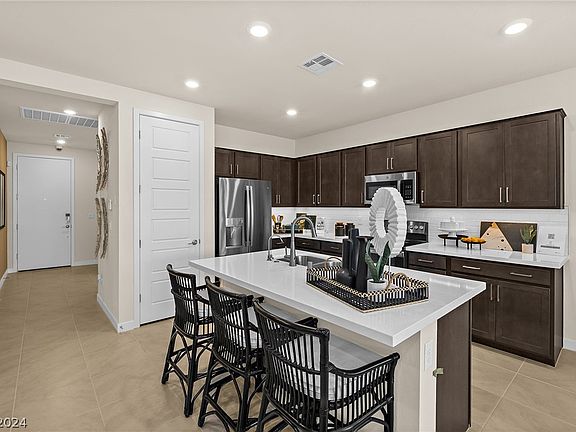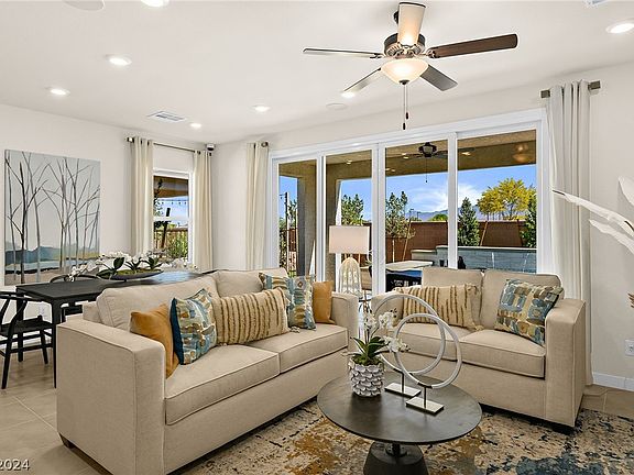 REPRESENTATIVE PHOTOS ADDED. June Completion! ~ Nestled within the lively 55+ active lifestyle enclave of Ovation at Mountain Falls, discover the charm of the Foxglove floor plan. Boasting 1,345 square feet of space, this layout includes 2 bedrooms, 2 bathrooms, and a 2-bay garage. The primary suite offers a secluded oasis, set apart from the guest room and bathroom. Experience the seamless integration of the gathering room, dining space, and kitchen, epitomizing the sought-after open-concept design, perfect for entertaining friends and family. Enjoy the delightful Pahrump climate from the covered outdoor living area. Though not the largest option available, the Foxglove undoubtedly promises to capture your heart! Structural options include: 12' center meet sliding glass door.