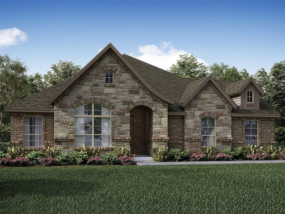 NEW JOHN HOUSTON HOME IN THE GROVE MIDLOTHIAN ISD. Open concept 1 story floorplan with 4 bedrooms, 2 baths, 2 car garage and a covered patio. Unique features about this home include white kitchen cabinets to the ceiling, wood wrap kitchen island, upgraded quartz counter tops, PPG interior paint, brushed nickel fixtures, engineered wood flooring, and upgraded tile throughout. Ready late May-Mid June
