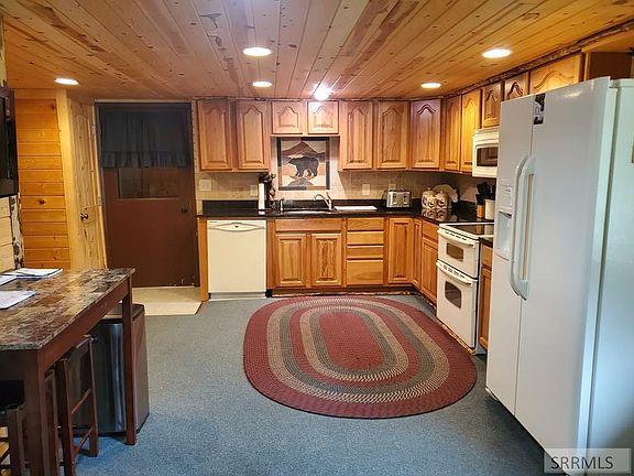 Cabin in the woods is what you are looking for? Here is where you and yours will make memories to last! Open kitchen, living room floor plan on the main level. with a gorgeous wood bar ! Lots of Island park Charm, with bear wood carvings! Wood burning stove to keep you warm on the chilly winter stays! Also on the main level is a full bathroom with full laundry hookups. Granite countertops! Charming tile work above the kitchen stove. Upstairs a 3/4 bathroom Cedar lined, and 3 bedrooms with a walkout covered patio! 30 miles to Yellowstone National Park, 1.5 hours to Big Sky and Grand Targhee ski resorts , central to blue ribbon fly fishing! Snowmobile and ATV right from your property! 2 car attached garage, walk straight into kitchen from garage, no need to traipse through mounds of snow. Currently accommodates 6 guests as a vacation rental. This has been a successful vacation rental! 220 outlet in garage!