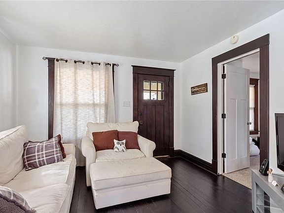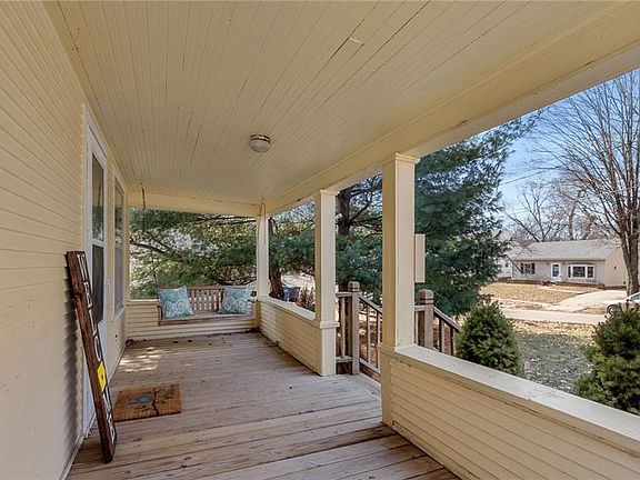 Adorable 2 Bedroom Bungalow w/ charming front porch swing in Oak Park! Features loads of natural light to highlight the dark stained oak wood floors & large stained trim w/ white doors. Plank tiled kitchen w/ glass door maple cabinetry, gas stove, brushed nickel fixtures, octagon window & side by side refrigerator. 2 nice sized bedrooms, formal dining room w/ tin style ceiling tiles, decorative wood columns w/ trim separate the living room from the dining room. Supersized bathroom w/ built in shelving, deep soaking tub & tiled tub surround. New waterline to the street! Walk out basement has loads of storage. Large 15x12 ft deck, 6 ft wood privacy fence, 24x24 ft detached garage w/ electrical, flat drive w/ basketball hoop, corner lot, mature trees & landscaping. Close to bike trails & parks. Quick commute to anywhere in the metro! Don't miss this HOME!