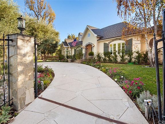 Gated & private, this South of the Boulevard Classic Single Level French Country residence offers hardwood floors, dramatic beam ceilings, French doors throughout, beautiful windows, stone fireplaces and extraordinary attention to detail. Elegant living room and den/media room with double stone fireplace, large formal dining room. Gourmet chef's kitchen with center-island, custom cabinets, top-of-the-line appliances & lovely breakfast room with French doors opening to private outdoor entertaining area. Spacious master suite with fireplace and custom walk-in closet. Two additional guest bedrooms + bath. Sparkling pool, spa, grass yard and a highly desirable separate detached office. Ideal Sherman Oaks location close to fine dining, shopping, easy Westside access and excellent public & private schools. A beautiful & special residence with style & privacy. A must see!