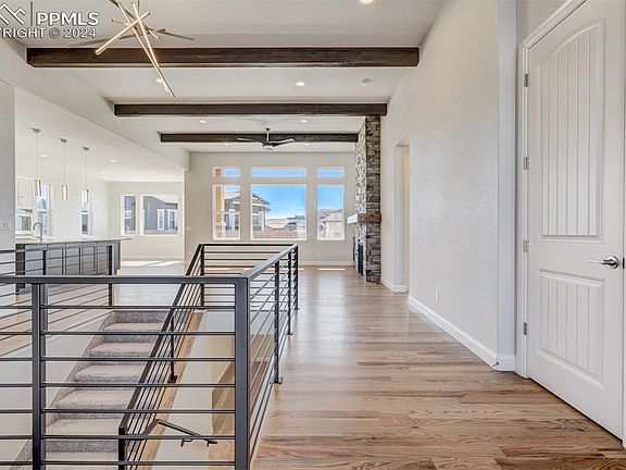 A Rustic gem nestled in the coveted master-planned community of Cordera. Minutes from I-25 and located right off of Powers/Highway 83, you will find this beautiful 3-car, 5-bedroom, and 5-bathroom home. Built by one of the area’s premiere luxury home builders, you can expect it to have all of the items you have been dreaming of in your future home. As you enter the home, you will notice the open floor plan accented by an elegant staircase, beautiful site-finished wood floors, tall ceilings, and oversized windows providing ample natural light. Move to the heart of the home to appreciate the open concept floor plan where the great room, detailed by a beamed ceiling, custom fireplace, and entertainment area, flow seamlessly into the kitchen and dining area.The gourmet kitchen is equipped with high-end Kitchen-Aid appliances that include a six-burner range, double oven, dishwasher, and microwave drawer. This home is designed to accommodate “main floor living” with everything you need on the main floor. The main floor Primary Suite has large windows, and an atrium door that opens to a covered, oversized patio. The primary bath is a spa-like retreat with a curbless/frameless shower, free-standing tub, dual vanities, and a large walk-in closet. The main floor also includes a large guest bedroom with an en-suite bathroom, a powder bathroom, and a large laundry/ mud room that also serves as a drop-zone coming in from the Garage. The lower level of the home has been designed for function and entertainment. There is a large rec/room perfect for a theater area and a pool table, and the builder has included a wet bar. There are also three bedrooms and two and a half bathrooms to accommodate family and guests. This home is under construction and slated to be finished in late spring. Call today to set up your private showing.