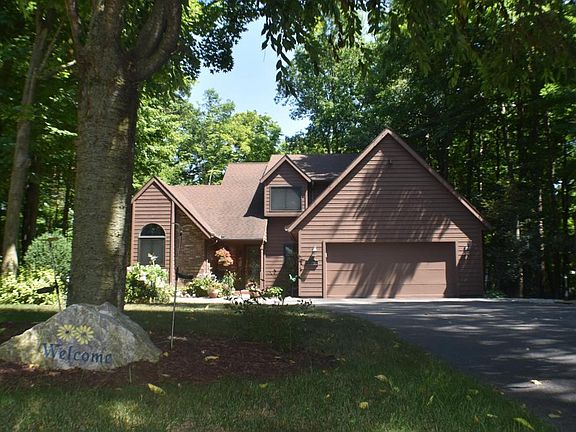 This home checks all the boxes! Enjoy the peace and serenity of being on a wooded lot with a ravine, all while being within a few minutes of I-94 and many local shops and restaurants. Enjoy picturesque views from the deck while relaxing in your hot tub year round! Currently the yard is landscaped with rocks to be low maintenance but with a little work could easily be made into a nice grassy area. Storage is not an issue with this home! Not only do you get an oversized 2 car garage with built in storage, you get a 12X24 shed with 220 volt service. This home also boasts a workshop in the basement with ample storage and outdoor access. With this home you also get a main floor master and laundry. What more could you ask? The master bathroom has his and hers walk in closets, a whirlpool tub, and a seperate shower. The two bedrooms upstairs have walk in closets, one of which has access to a 22X27 unfinished space that is great for storage or anything you heart desires. When you walk through, make sure to check out all of the cabinet space in the kitchen and the beautiful granite countertops. Also notice that the flow of the home is perfect for entertaining. All bathrooms(excluding the master) have been updated as well as many fixtures throughout the home. You have secondary living space in the basement along with a bedroom and a bathroom. What are you waiting for? Lets make this house your home today!
