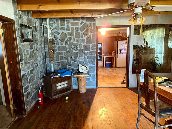 Perfect opportunity for income potential with a main home (2,208 sq. ft.), guest house (912 sq. ft.), studio attached to a garage (1,381 sq. ft.) and a workshop that could be converted (831 sq. ft.) All square footage is approximate. The main home was built in the 1950s and added onto many times. It has 4 bedrooms/2 full bath rooms and two extra rooms for storage and a foyer. The storage room is located in the back of the home and the foyer is off the kitchen (both not pictured). The property has been maintained as much as possible but could use some love to spruce it up a bit. A total of 2.401 acres and 1.15 acres of water rights allow for agricultural use in the backyard. Shade trees throughout the property create privacy, temperature control and a beautiful yard. The properties are hooked up to community water and septic. Sewer lines run along the highway if hook-ups are necessary. The guest house is modular, it has a dog run and two sheds in the back, as well as a porch. The garage needs the most work and has a studio apartment built into it. The well resides in one of the rooms in the garage and may still be set up for agricultural use. There's a workshop also known as Wild West Trading Co. closest to the highway. This property encompasses possible wealth for its new owner after being worked on a bit. Property is being sold as is. Please reach out for any further questions.