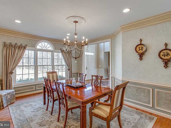 Both comfortable and elegant, this upscale home is sited on a private 3 acre lot in "The Marches" a quiet, wooded community of 30 estate homes on large lots. There are so many luxurious "extras" in this home its original purchase price exceeded most neighboring homes by over $100,000. Here you have a spacious FR with a dramatic 2 storey stone fireplace flanked by floor-to-ceiling windows. The custom kitchen boasts furniture grade cherry cabinets and offers a large center island, granite counter tops and high end SS appliances including a 5-burner gas cooktop venting to outside and two ovens. Other Kitchen extras include a built-in sideboard with display cabinets, butler's pantry, walk in pantry and a beverage refrigerator. The large eating area has French doors to the ample deck overlooking the private backyard. The kitchen opens to the family room and offers access to a discreet home center with built in office, laundry room with sink, garage and covered front entrances. The home's impressive formal living and dining rooms feature an upgraded moulding package including multi-piece crown, chair rail, panels and columns. Tucked away is a private office with backyard view. There are two powder rooms on the main level -- a formal one with elegant finishes and 2nd one located in the home center. There are two staircases also -- a curved one with upgraded banister and a back staircase from the kitchen/home center to the bedroom level. The master retreat boasts a tray ceiling, cozy sitting room with fireplace, two walk in closets and a luxurious spa bath with cathedral ceiling, two vanities, jacuzzi, large shower and private WC with window. The secondary bedrooms are all large -- one has a private en suite bath, the other two share a buddy bath with 2 sinks and a privacy area with tub and toilet. Downstairs the bright walkout lower level includes a media room with sound insulated ceiling (equipment conveys), a game area with french doors to covered patio, wet bar rough in, an exercise room easily converted to 5th BR, full bath, guest/playroom and an enormous storage room. Outside enjoy your large, lush, level backyard surrounded by evergreen trees. The well and septic are located to the side, so you can easily add a pool if desired. While it's hard to find a home with such a timeless interior, it's impossible to find one with a beautifully landscaped 3 acre lot in an established luxury community. For further info check the virtual tour which includes the fabulous floor plan.