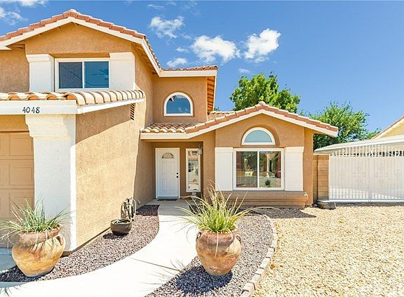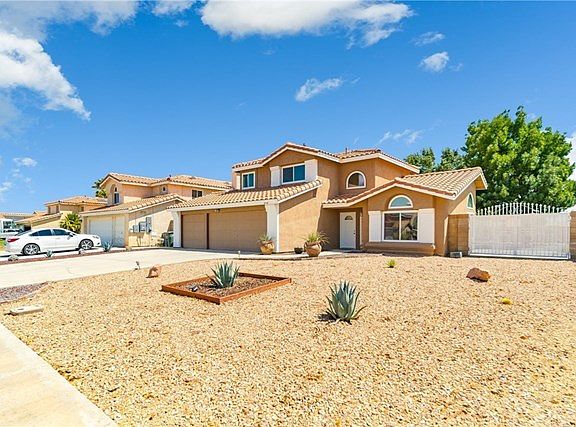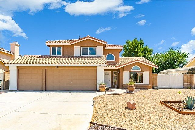 OWNED SOLAR SYSTEM & NEW WINDOWS, New HEAT, AC & Ducting. Awesome 4 bedroom 3 bathroom ~ 2 story home near the airpark in Rosamond. Gorgeous tile flooring throughout downstairs, newer carpet upstairs. Bedroom and full bathroom downstairs. Kitchen features granite counters with glass tile back-splash, stainless steel appliances, open to informal dining and family room with stacked stone fireplace. Upstairs master bedroom with attached master bathroom with dual sink vanity. 2 secondary bedrooms & a guest bathroom located upstairs as well. New dual paned windows with lifetime warranty, new heating & AC system with all new ducting. Solar system - 13 panels for extremely low electric bills. RV access, 3 car attached garage, shed with power as well as large patio with block wall fencing.