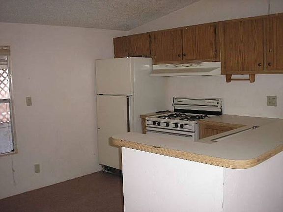 Nice doublewide, central Location Fully fenced, landscaped, new plumbing,2 car carport, forced gas heat, evap cooler, ceiling fans. Assisted Animals Only