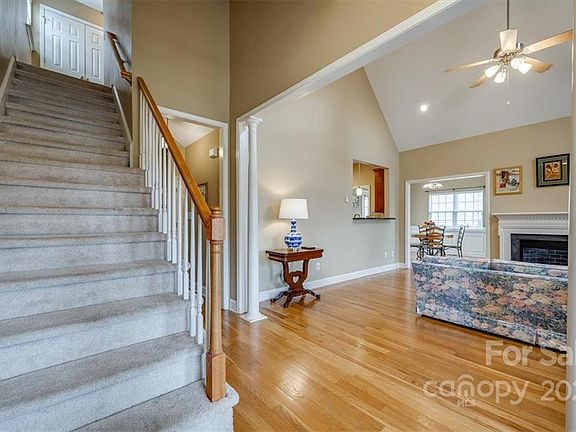Charming cul de sac home with brick front, large covered front porch, & great curb appeal. This home features a welcoming foyer, wood flooring throughout most of the main, & plenty of windows & natural light. The soaring vaulted living room is accented with columns, gas fireplace, & has a pass through to the kitchen- great for entertaining! The dining room is appointed with portrait molding & tray ceiling. The kitchen features ample cabinets, stainless steel appliances, & granite counter tops. All appliances convey. The main floor primary bedroom suite is spacious & features a walk-in closet, two vanities, garden tub, separate shower, and tile flooring. This home offers great storage with easily accessible walk-in attic spaces on the second floor off the hall closet and front bedroom. Relax and enjoy the outdoors on your deck. Newer roof (2018), HVAC (2019, 2021), and water heater. Additional parcel behind main property conveys. Transferable termite plan & HVAC warranties.