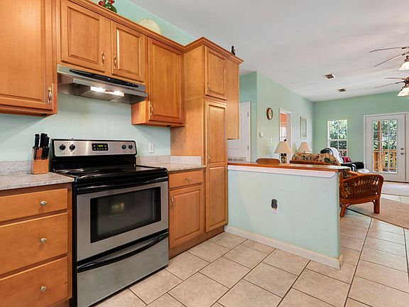 - French Doors, Attic/Stair Storage, Ceiling Fan, Natural Stone Counter Tops