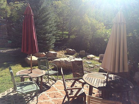 Very unique and private cabin home on two levels plus a 3rd level loft bedroom with a private balcony. Located on a beautiful .48 acre lot with evergreens and aspen trees, Beaver Creek running through the back yard, firepit and patio area. Fantastic views from two huge decks. Lots of parking, storage shed and 3 single-car sized garages with electricity for workshops, storage, etc. Covered parking underneath the decks for up to 4 vehicles. Large covered porch in front and rear of home. Private separate Finnish sauna at rear of home. Upper level a/c and ceiling fans, vaulted ceilings and skylights, wood-burning stove and small wet-bar. Gas range, refrigerator and w/d on main level. 4 water shares with property.