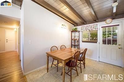 This Mid-century home is nestled on a tranquil corner and features 1,016 sq. ft. of living space, a formal living room, an eat-in kitchen, 3 bedrooms, 1 bathroom, and a spectacular backyard. Situated on a peaceful corner of the street, this home has wonderful curb appeal with its meticulously landscaped front lawn framing the walkway as you approach the front door. Inside, the home boasts wooden beamed ceilings, new flooring, and plenty of natural sunlight. A special feature is the amazing backyard oasis that is truly a delight for the senses.