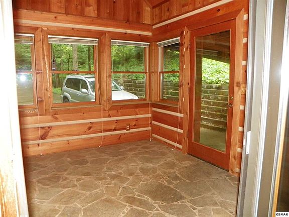 Beautiful log home nestled in a wooded, private setting in Wonderland Woods in the Heart of Wears Valley. Featuring an Open concept Great room with gas log Fireplace and wood floors; Dining room / Kitchen combo with tile top island and pantry. The Master Bedroom on the main level comes with a walk-in closet and full bath with Whirlpool tub. The 2nd Bedroom on level 2 also has a full bath and steps out to the "catwalk" overlooking the Great room and Kitchen/ Dining room. Two decks for relaxing, listening to the creek and bird song. A lovely Sun room at the end of the upper deck, workshop / storage building at the end of the driveway and the lower deck is already set up for your Hot tub. The one car garage in the basement leads you into a bonus room currently used as an office and a utility room for your washer and dryer. Close to Pigeon Forge, Townsend and The Great Smoky Mountain National Park this home could make a great vacation home, permanent home or overnight rental! (NOTE: Owner had an AT &T Wifi Modem box for internet service.)