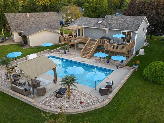 THE PERFECT BACKYARD OASIS.. No expense spared when updating this 3 bed, 2 bathhome in 2020. Kitchen boasts vaulted ceilings, custom cabinets, quartz counters, breakfast bar, LG Studio stainless appliances, tile backsplash, dining area, undermount lighting & pantry. Vaulted ceilings continue in living room w/ skylight & tile floor. Beautiful main bath (2018) w/ full tile custom shower w/ dual shower heads, subway tile 1/2 wall, vanity w/ granite top, plenty of storage, & skylight. Gorgeous tile flooring continues in main bedroom w/ double closets & slider out to oversized deck! 2 other nice sized bedrooms complete main floor. Lower level offers 2nd living area, tile floors, updated 1/2 bath, & laundry room. New furnace & AC in 2020, whole house (& pool) generator (2021), roof in 2015, siding & windows in 2017, front landscape & driveway in 2016. 20x40 INGROUND SPORT POOL (2018) w/ heater, landscape lighting, large gazebo, & HUGE deck. No backyard neighbors, quiet street, & CP schools!