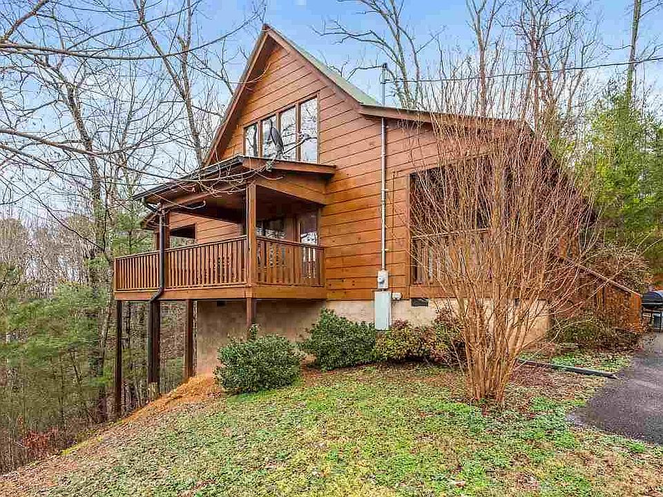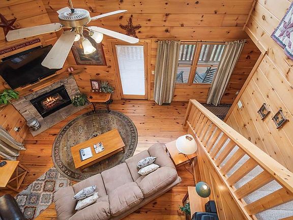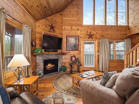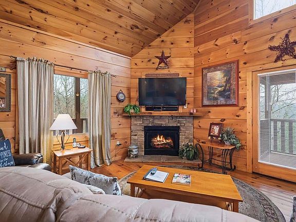 GREAT RENTAL INCOME! MOUNTAIN MUSIC is a fully furnished 1 bedroom 1 bath cabin nestled on a large partially wooded lot with beautiful mountain views. Covered front porch at entry door into the all wood interior living room with vaulted ceiling, gas fireplace, and lots of windows to enjoy the fabulous views. Fully equipped kitchen with spacious dining area. Master bedroom features a king bed, full bath, and a rejuvenating spa tub. Located just outside the master bedroom is another covered deck with a relaxing private hot tub. The loft rec room features a pool table and comfortable sitting area. Convenient location to Pigeon Forge, Gatlinburg and Sevierville.