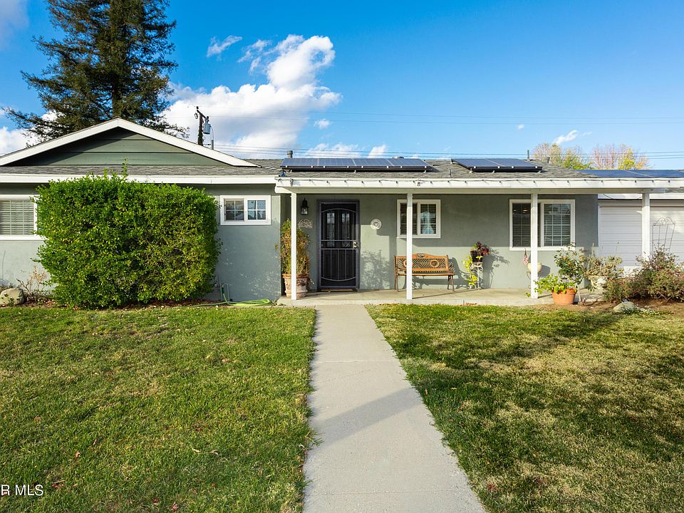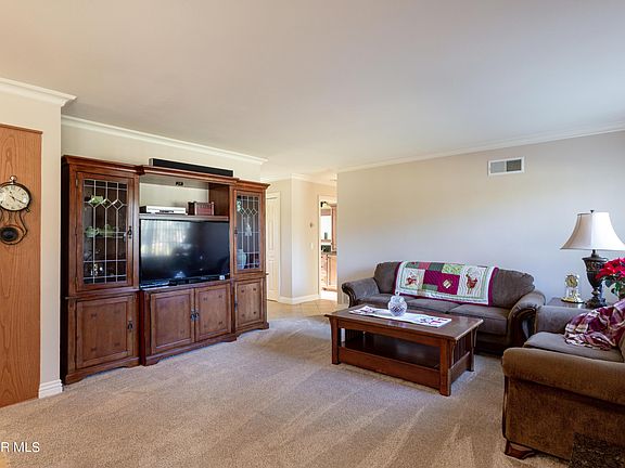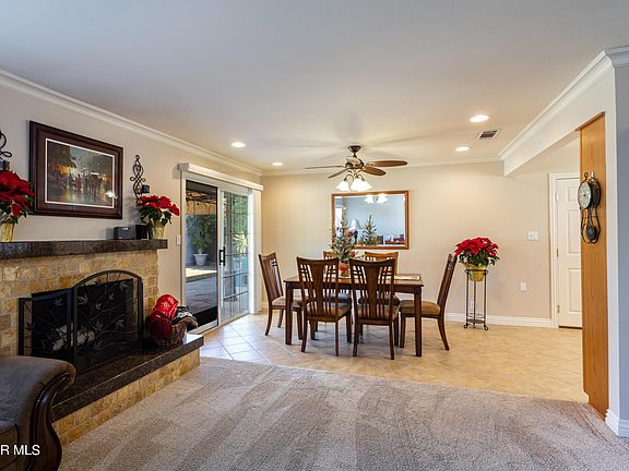 This ranch home has a warm and welcoming charm! Lovely easy care tile flows from the entry through the kitchen, eating area, dining area, hallway, and baths. Soft neutral carpeting can be found in the living room and bedrooms. Features of the living room are a cozy fireplace with raised hearth, crown molding, and a large window that provides a view of the peaceful back yard. The beautiful kitchen showcases warm, oak cabinetry, granite counters, and a stone tile back splash. Ceiling fans appoint the dining areas and all of the bedrooms. The hall bath has a large vanity with granite counter top and backsplash. A custom tile surround enhances the shower over tub combination. The primary bedroom bath features a large shower with crystal clear shower doors, custom tile work, tiled ceiling and 2 showerheads - one a regular shower head as well as a large rain shower head directly overhead. The inviting back yard has a large patio with a free-standing pergola. A fenced garden area awaits your choice of flowers and vegetables. Stepping stones lead you to the shed which is currently used as a workshop but might make a perfect playhouse for the kids? There is an enclosed are behind the shed that also offers a large storage cabinet. An orange and lemon tree can provide fresh juice when in season.