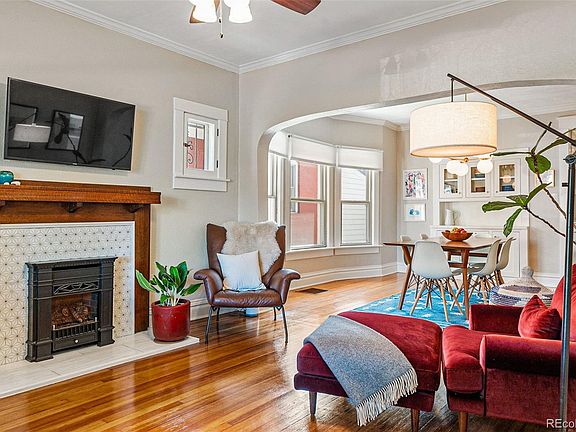 This is it! The Craftsman Bungalow you've been looking for in a fantastic location! Blending timeless elegance with modern updates, this home is located on a premium block in the "sweet spot" of Sunnyside! Nestled on a quiet street with beautiful mature trees, it is just blocks from popular restaurants, coffee shops, boutiques and wellness hotspots. Upon arrival, there's an inviting front porch complete with a swing to enjoy the tranquil surroundings. The entry foyer has a convenient coat closet and opens to light-filled living & dining areas accentuated by high ceilings, original built-ins, crown molding, bay windows, a gas log fireplace and a stunning leaded glass picture window that bathes the space in natural light. The spacious interior lives large with 3 bedrooms & 2 bathrooms all conveniently located on one level. Original hardwood floors run through the living, dining and bedroom areas adding warmth and character. The beautifully remodeled kitchen combines style and function, showcasing exposed brick, a beautiful large custom walnut island and quartz countertops. The expansive primary suite features a grand walk-in closet/dressing room with custom designer built-ins and an en-suite full bathroom. Off the kitchen, the laundry/mudroom is fully equipped with built-in cabinetry for added counter space & storage. The third bedroom/flex space is thoughtfully separated from the other bedrooms, making it ideal for a guest room or home office. The unfinished basement adds bonus storage space and potential for future finishing. Head outside to the large private yard w/ mature landscaping, paved patio & pergola that are perfect for entertaining. New central AC (2021), New roof/electrical (2017). The location can't be beat! Just 1 block to the attractions on Tejon and 3 blocks to 44th Avenue where you'll find Sunnyside's famous brunch spots, boutiques, restaurants, live music & Chaffee Park! Don't miss this opportunity to own a great home in a fantastic neighborhood!