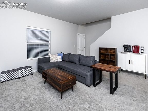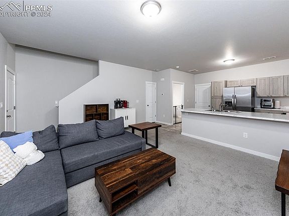 This modern 3-bedroom, 2.5-bathroom, two-story townhome is centrally located and move-in ready. Located in a well maintained and fully landscaped community with multiple common areas. The main floor welcomes you into a spacious living room with an open flow to the kitchen. The kitchen features stylish gray wood cabinets, breakfast bar for extra seating, stainless steel appliances, and a convenient pantry cabinet. A half bath with a pedestal sink, large closet under the stairs for additional storage, and access to the 2-car garage complete this level. The second floor is fully carpeted and includes a large primary bedroom with double windows, a walk-in closet, and attached bathroom featuring a tub/shower combo and updated vanity. The second bedroom is generously sized, while the third bedroom offers ample space and double closets. A full hallway bathroom and a laundry closet provide convenience and functionality. Central A/C! Easy access to I-25 and quick commute to all military installations.