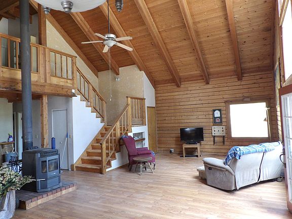 Motivated seller. Perfect opportunity for self sustained family farm. This off grid property features an amazing log home with large vaulted ceilings and cathedral windows overlooking the 42 acre property. Very private at the end of a long driveway. The log home is 3 bedroom, 2 bathroom with 2,124 square feet of living space. Wood accents throughout the log home for a cabin feel. Off grid system features solar panels, wind generator, dual Outback Inverters and a large battery bank. Water is pumped from the well up the hill to a 5,000 gallon water tank, and then gravity feeds down to the house. Outbuildings include solar shed, garage and large carport. Plenty of room for all of you equipment, animals or just a great place to vacation with your family.
