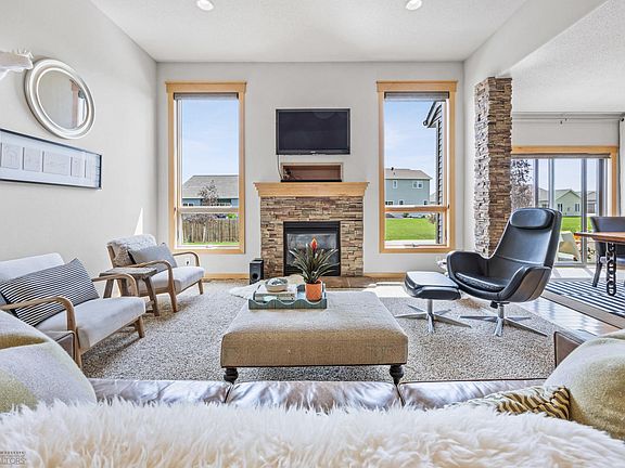 Welcome to this immaculate 4-bedroom, 3-bathroom rambler in a highly desirable Dilworth neighborhood! From the moment you enter, you'll be delighted by the bright and airy living room, showcasing floor-to-ceiling windows, a stunning gas fireplace, and 13-foot cathedral ceilings. The kitchen offers ample cabinetry, maple hardwood floors, a window above the sink, and a dining area that overlooks the beautifully landscaped backyard. Decorative accents are found throughout, along with the everyday convenience of a main-floor laundry room. Retreat to the luxurious primary suite, complete with a double-tray ceiling, dual vanities, an expansive tiled spa shower with six spray heads, and a generous walk-in closet. Downstairs, enjoy even more space to relax or entertain in the large family room, featuring shiplap accents, a 7-speaker surround sound system, abundant storage, and a versatile flex space—perfect for a home gym or storage. Don't miss the cozy reading nook that doubles as extra sleeping for guests, complete with storage beneath. The two basement bedrooms are sizable, with a shared Jack-and-Jill bathroom boasting dual custom vanities crafted from exotic zebra wood. The elevated stamped concrete patio is built on a full foundation and includes a rough-in for floor heating, making it ready for a future addition or sunroom. This home has been meticulously maintained with numerous updates and amenities including three stamped concrete patios, interior dry-stack stone pillars, custom trim and doors throughout, transom windows above bedroom doors, dedicated storage areas, a built-in dog kennel in the laundry room, an air exchanger, a new water heater (2023), and walk-in closets in every bedroom. All this, plus incredibly LOW specials! This home is a rare find—schedule your showing today!
